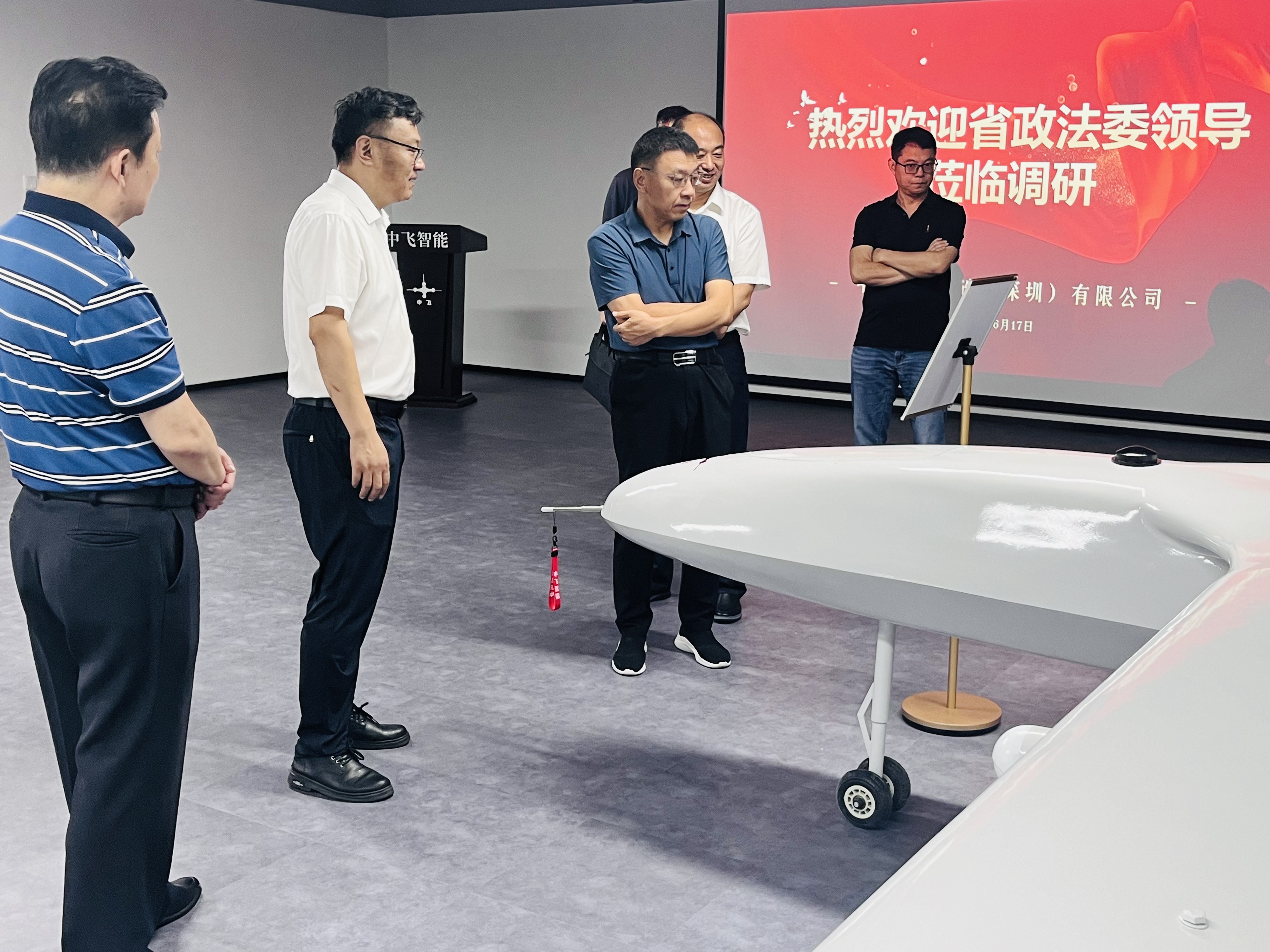 6月17日上午,广东省省委政法委副书记、新疆驻广东省工作组党委书记王奕文一行,在盐田区区委政法委副书记张长青陪同下莅临我司考察调研,我司中飞智能制造(深圳)有限公司董事长李维福及管理团队热情接待。此次调研不仅体现了省领导对我司的深切关怀,也展现了对低空经济这一新兴产业的高度重视。